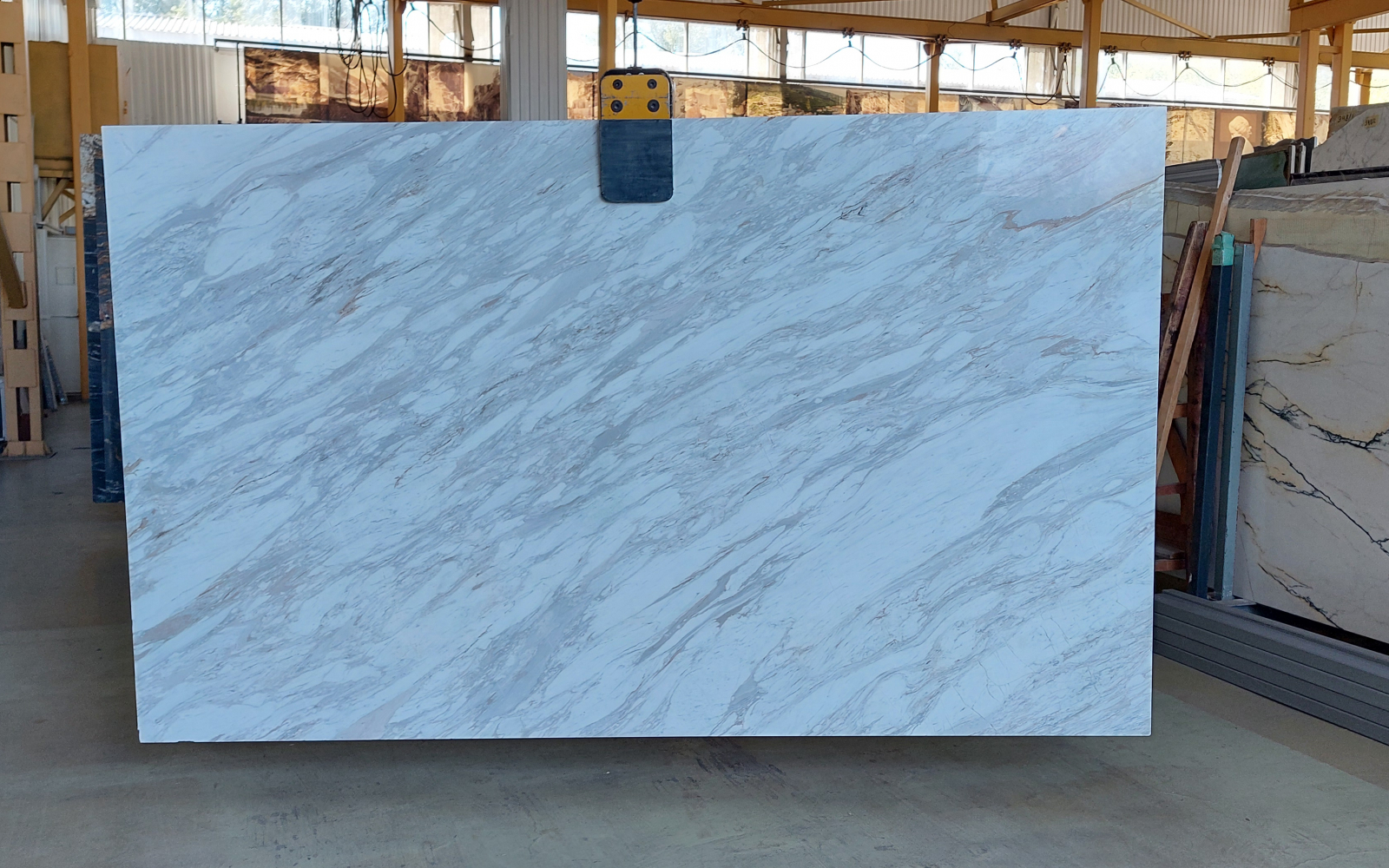 Греческий мрамор Volakas отлично подходит для внутренней отделки помещений - облицовки стен, каминов, пола, ванных комнат, лестниц. Диагональная нежная серо-бежевая жилка делает этот камень привлекательным, такой узор создает эффект движения и легкости. Полированные слэбы толщиной 2см.